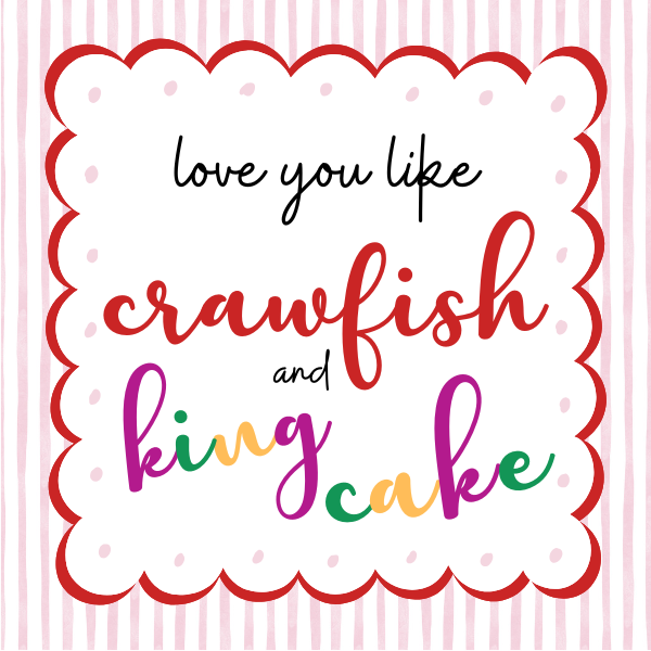 Love You Like Crawfish and King Cake Cookie. All cookies are heat sealed in clear bags for freshness. Cookies will be packaged in a clear box with ribbon and tag. Please check out our instagram for packaging pictures.